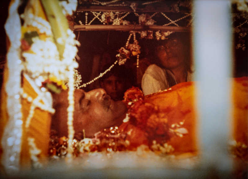 It shows Durgamayi Ma at Maharajji's side shortly after His Mahasamadhi in 1973.